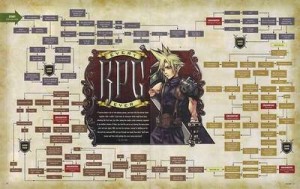 Voici une carte créée par une internaute qui rassemble en une charte la structure narrative de la quasi-totalité des RPG japonais.