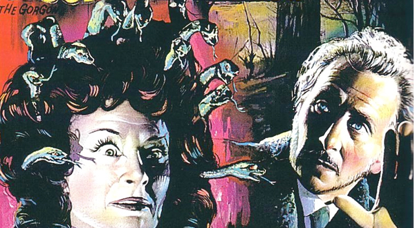 Ce qui est particulier avec The Gorgon, c’est d’avoir Peter Cushing en vilain et Christopher Lee en bon dans le même film, ce qui est rarissime pour les productions de la Hammer! Et si l’ambiance, les couleurs et les décors sont dignes des meilleurs du nom Hammer, on ne peut en dire autant de la gorgone, qui aurait gagné être plus qu’une femme avec des serpents en plastique sur la tête. Pour citer Christopher Lee: « La seule chose qui ne va pas avec la gorgone, c’est la gorgone! » Il en reste que cet « effet spécial » pas si spécial lui donne un charme ironique, qui nous rappelle la fragilité des films du studio britannique.